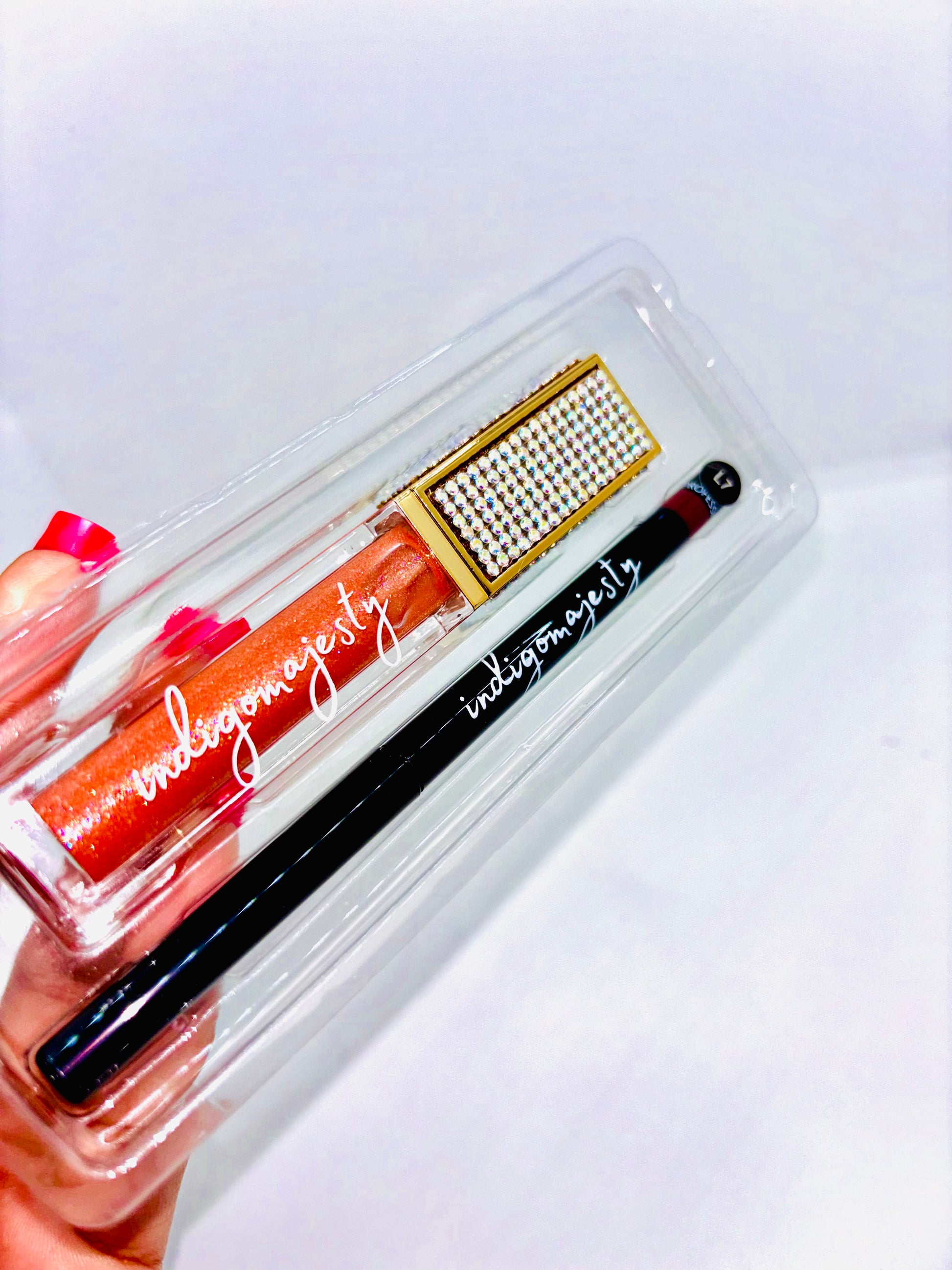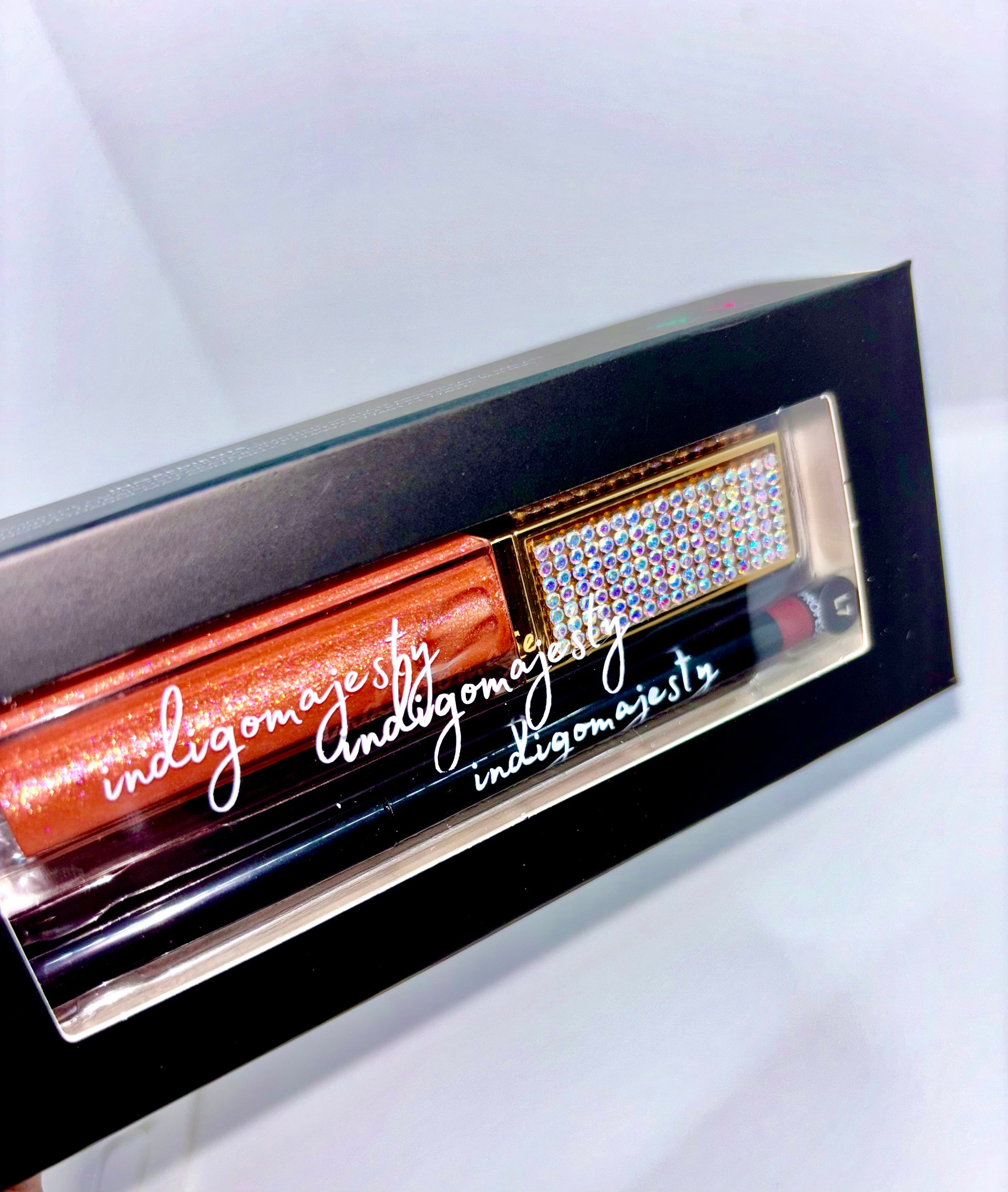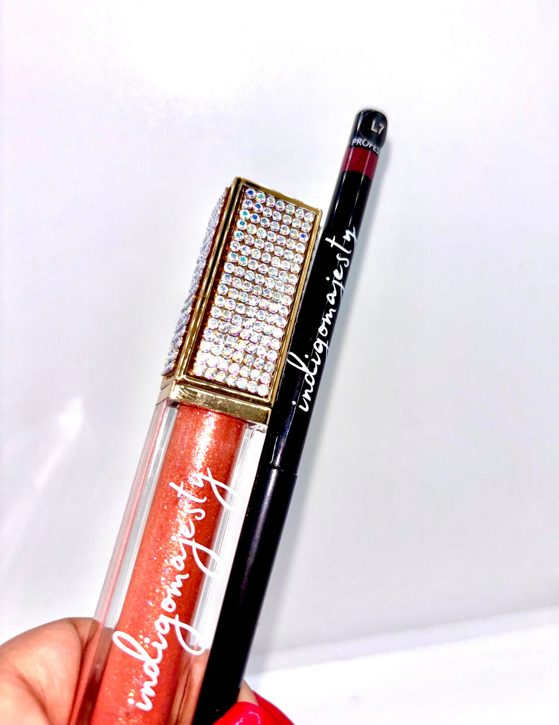 This gloss leaves a neutral bronze & shimmering finish. This also comes with a matching lipliner.