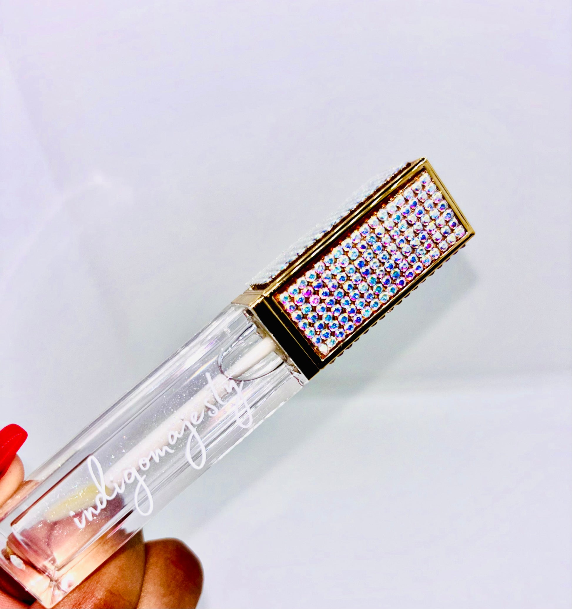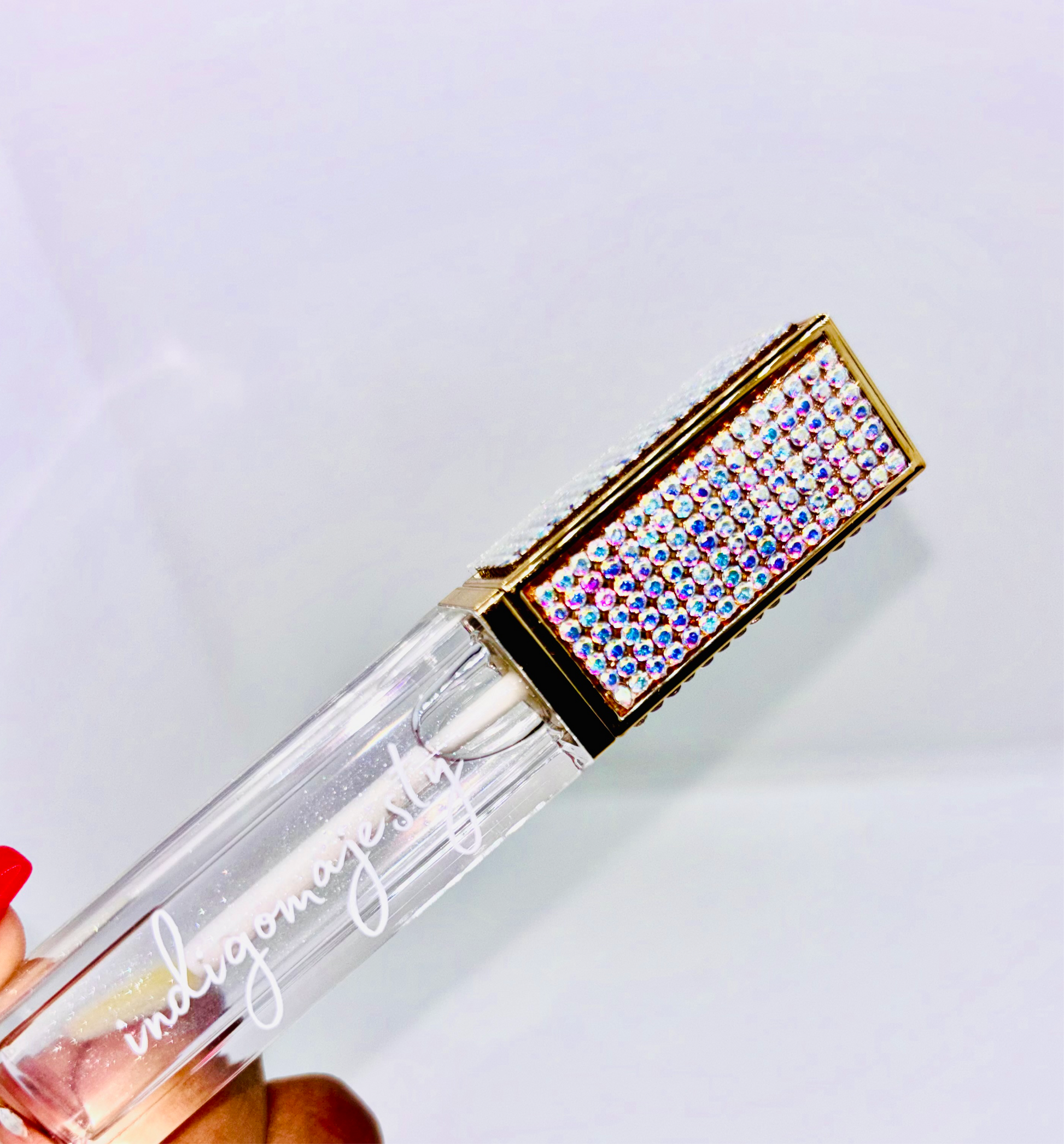 This gloss leaves a clear/glittery & sheer finish.